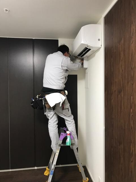 高層マンションでルームエアコンを4台取り付けに行ってきました。